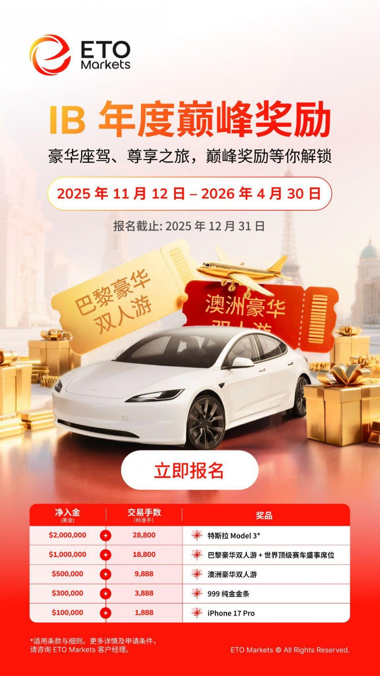 参与方式:请于 2025 年 12 月 31 日前将报名信息发送至 info@eto-markets.com,包括:参与活动代理账号、收件人信息等。