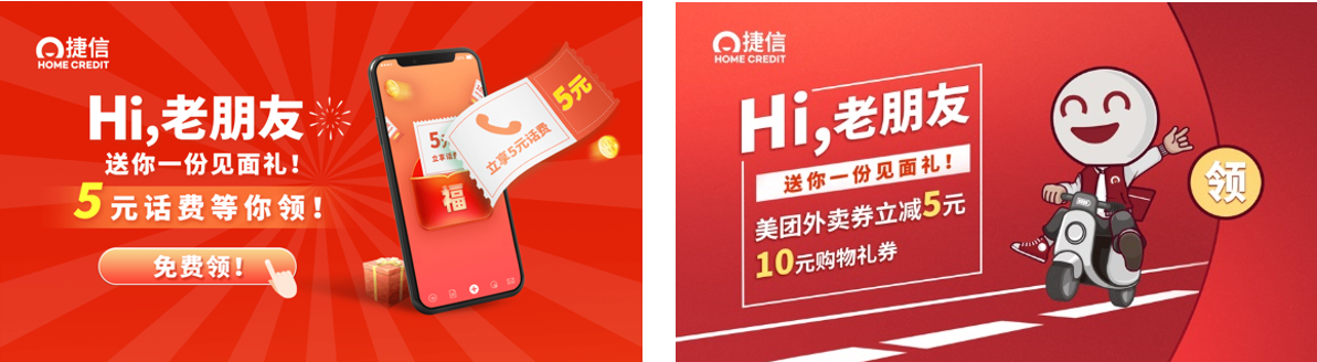 捷信此次“老客户专享限时好礼”活动以丰富好礼答谢老客户,尽显满满诚意。即日起,捷信受邀老用户只要通过广告活动页更新个人信息,不需要办理贷款或任何额外操作,即可享有5元美团外卖立减券、3-5元话费充值、10元青桔单车骑行券或5元盛趣游戏币等多种免费好礼,定向回馈百万老客户,希望与长久不见的“老朋友”们重新取得联系。